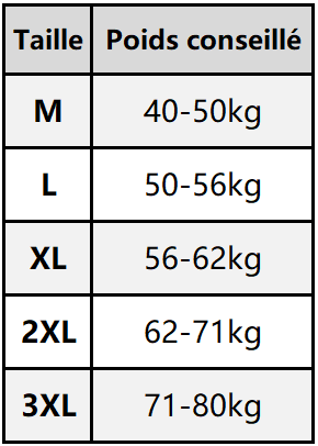 Vérifiez le tableau des tailles avant de commander afin de vous assurer que le vêtement vous ira parfaitement.