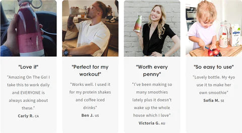 Ce mixeur rechargeable est doté de 6 lames et d'un filtre de sortie interne qui vide le contenu prêt à boire sans créer de morceaux ou de pulpe. Son design compact et portable permet de le transporter facilement dans votre sac, votre sac à dos, etc. Il est également doté d'une bandoulière sur le couvercle, qui peut être facilement retirée pour le nettoyage.