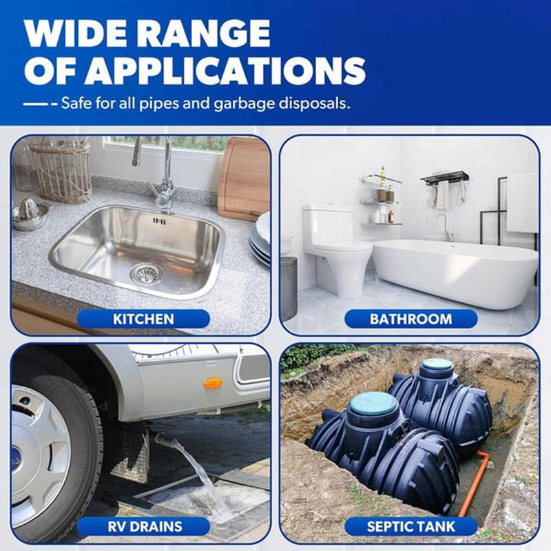 ADHÉSION DURABLE – Ce gel reste non dilué pendant de longues périodes, ce qui lui permet d'adhérer aux surfaces des tuyaux et de rester en contact avec les débris. Son adhérence prolongée assure une décomposition progressive des cheveux, de la graisse et des résidus de savon, pour un nettoyage en profondeur. À chaque application, il offre des performances constantes, réduisant ainsi la nécessité de traitements fréquents et contribuant à maintenir les tuyaux propres au fil du temps.