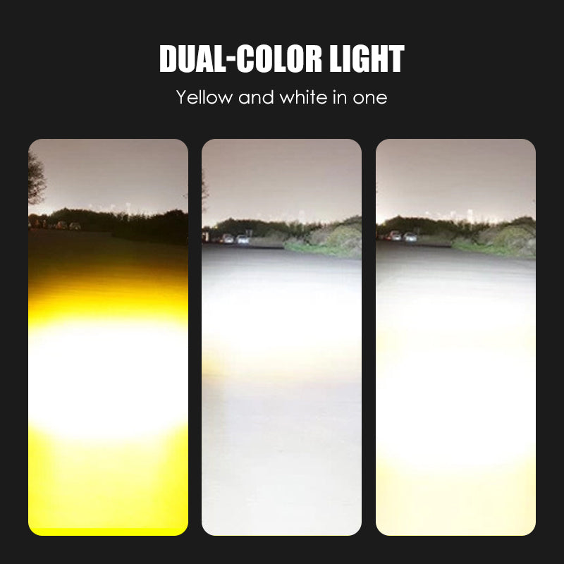 BICOLORE AVEC MODE FLASH INTÉGRÉ : Basculez entre les feux de croisement jaunes et les feux de route blancs. Fonction stroboscopique intégrée pour une sécurité et une visibilité accrues en cas d'urgence ou hors route.