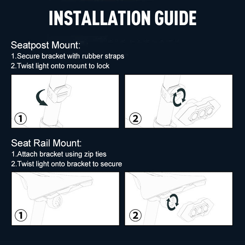 INSTALLATION RAPIDE: Prend en charge plusieurs positions de montage, telles que la tige de selle et le rail de selle, conçues pour être faciles à fixer et à retirer sans outils supplémentaires, offrant une installation flexible et sécurisée.